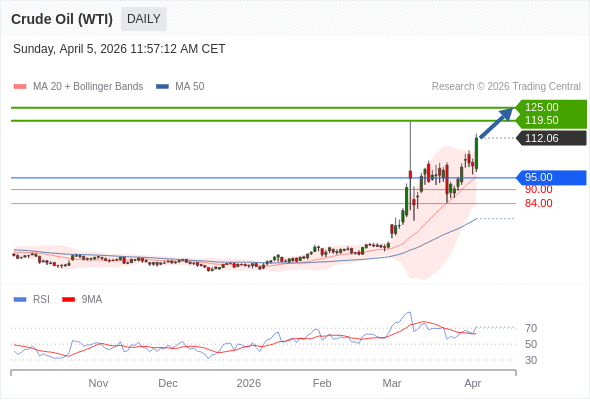 在 95.00 之上,看涨,目标价位为 119.50 ,然后为 125.00 。