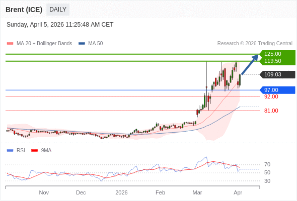 在 97.00 之上,看涨,目标价位为 119.50 ,然后为 125.00 。