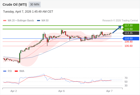 在 110.50 之上,看涨,目标价位为 115.50 ,然后为 117.30 。