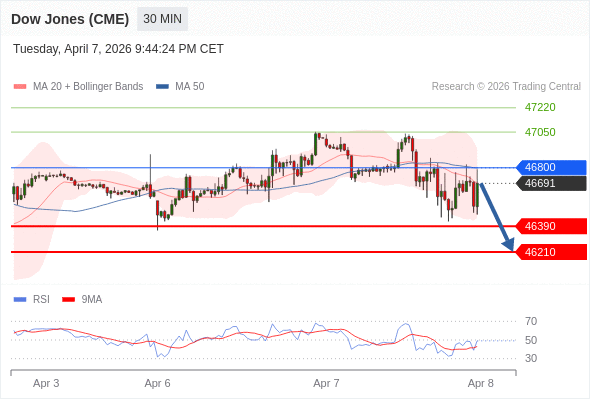 在 46800 之下,看跌,目标价位为 46390 ,然后为 46210 。