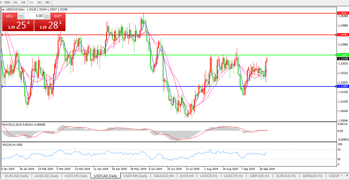 备选策略:1.3345之上,看涨,目标价位为1.3450,然后为1.3560。