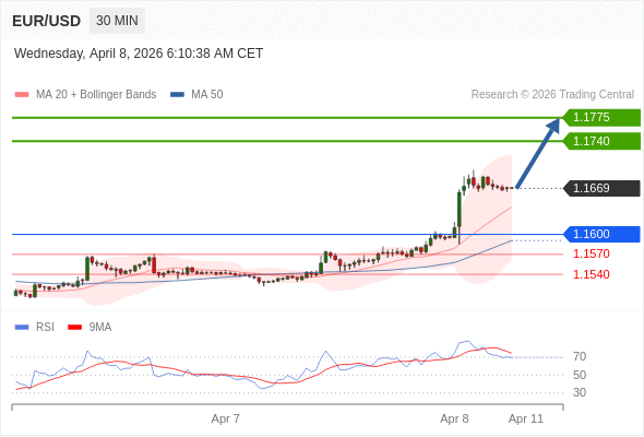 在 1.1600 之上,看涨,目标价位为 1.1740 ,然后为 1.1775 。