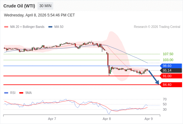 交易策略: 在 98.60 之下,看跌,目标价位为 91.00 ,然后为 84.40 。