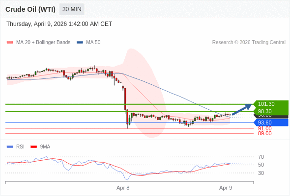 交易策略: 在 93.60 之上,看涨,目标价位为 98.30 ,然后为 101.30 。