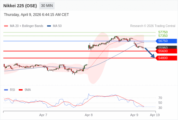在 56750 之下,看跌,目标价位为 55600 ,然后为 54800 。