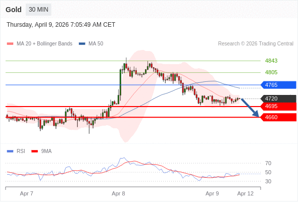 在 4765 之下,看跌,目标价位为 4695 ,然后为 4660 。