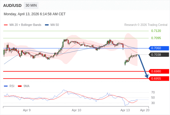 在 0.7060 之下,看跌,目标价位为 0.6980 ,然后为 0.6955 。