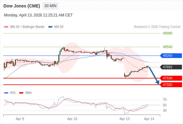 在 48260 之下,看跌,目标价位为 47530 ,然后为 47320 。