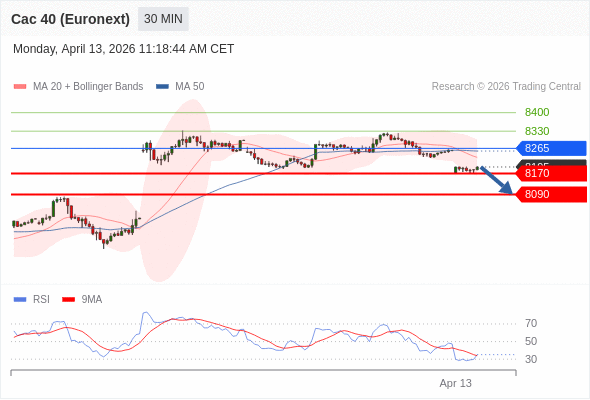 在 8265 之下,看跌,目标价位为 8170 ,然后为 8090 。