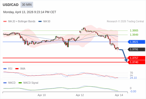 交易策略: 看跌,在 1.3821 之下。