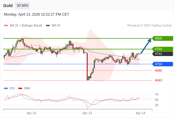 在 4704 之上,看涨,目标价位为 4760 ,然后为 4800 。