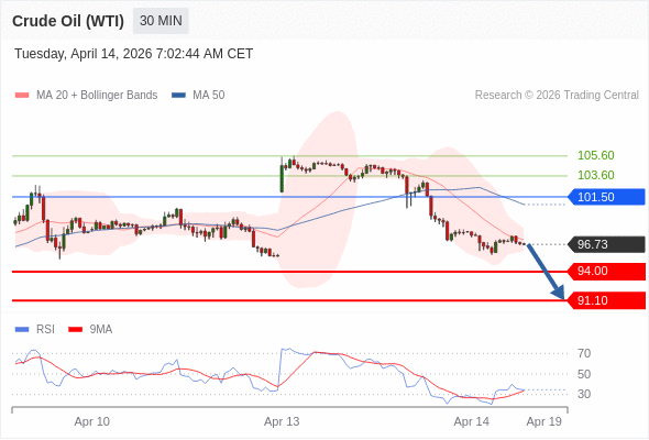 交易策略: 在 101.50 之下,看跌,目标价位为 94.00 ,然后为 91.10 。