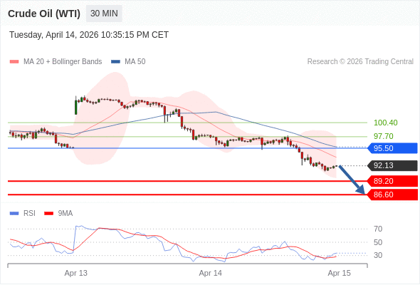 在 95.50 之下,看跌,目标价位为 89.20 ,然后为 86.60 。
