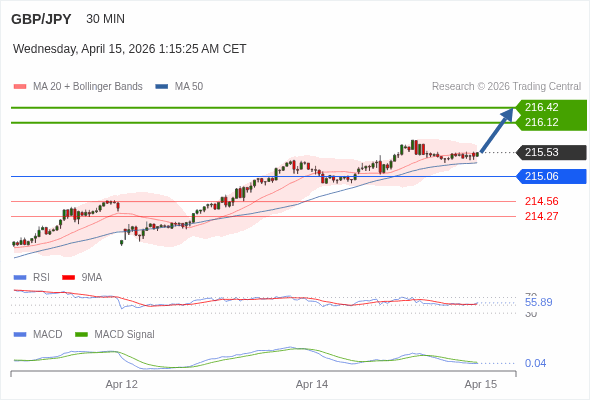 交易策略: 看涨,当 215.06 为支撑位,目标定在216.42。