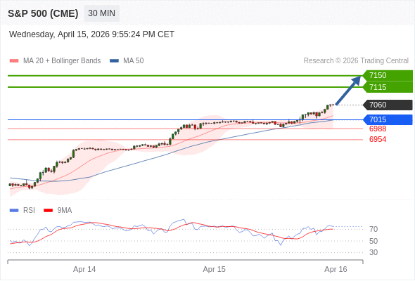 在 7015 之上,看涨,目标价位为 7115 ,然后为 7150 。