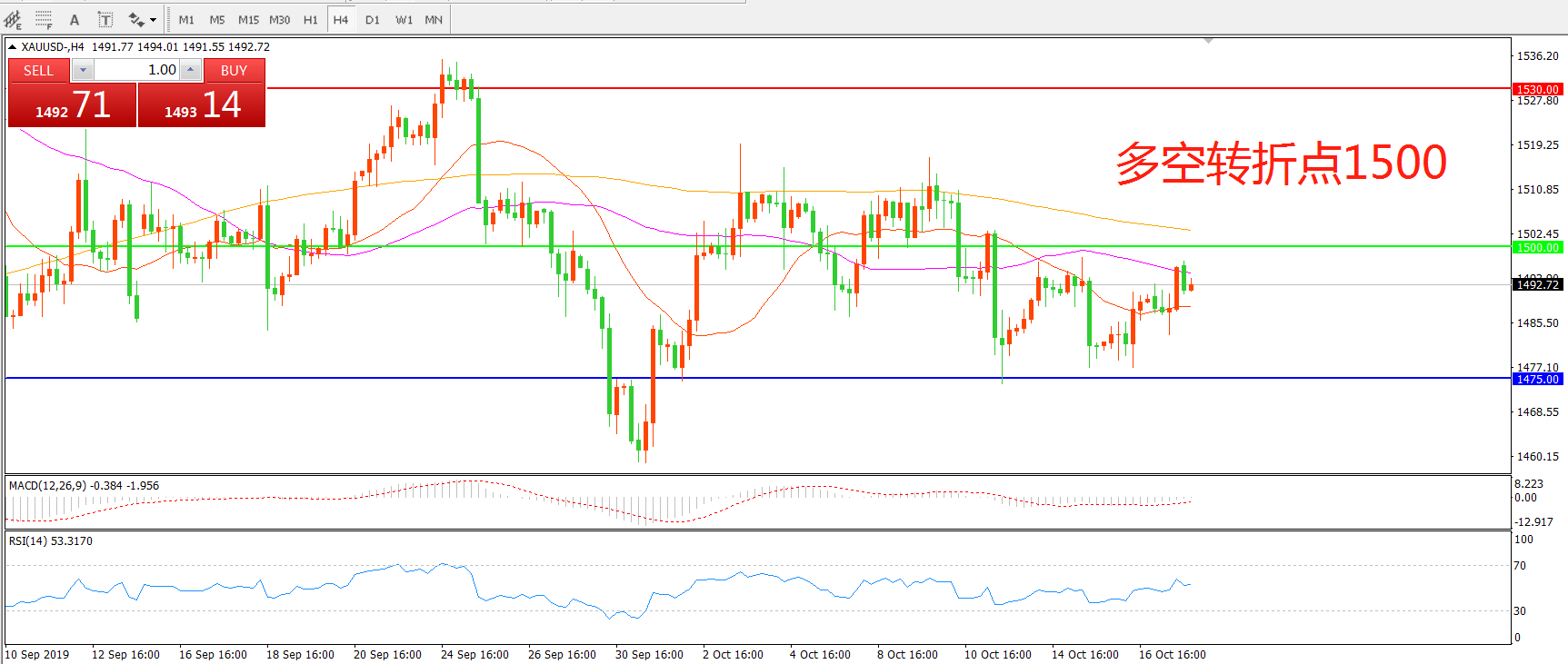 多空转折点:1500.00