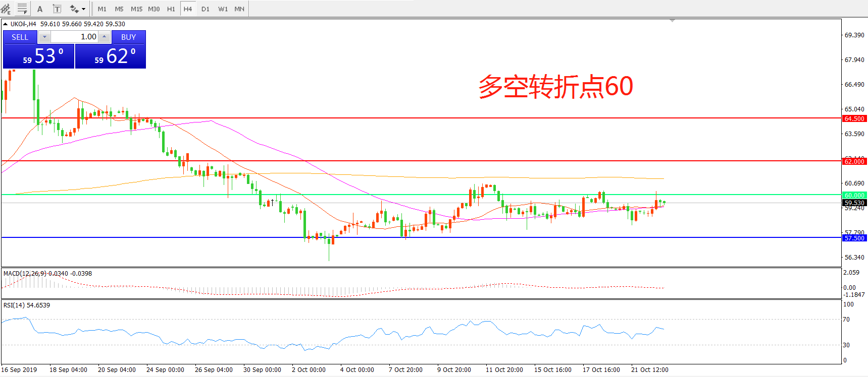 多空转折点:60.00