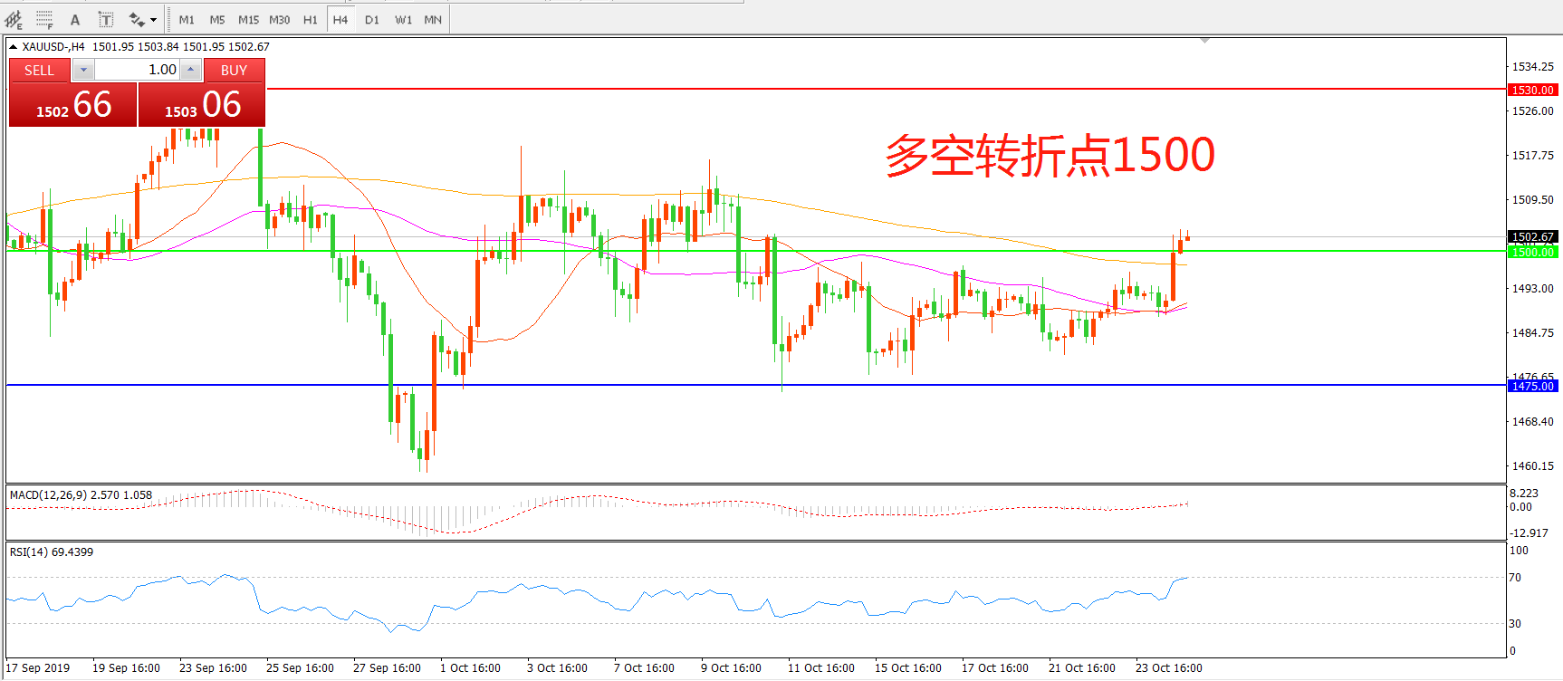 多空转折点:1500.00