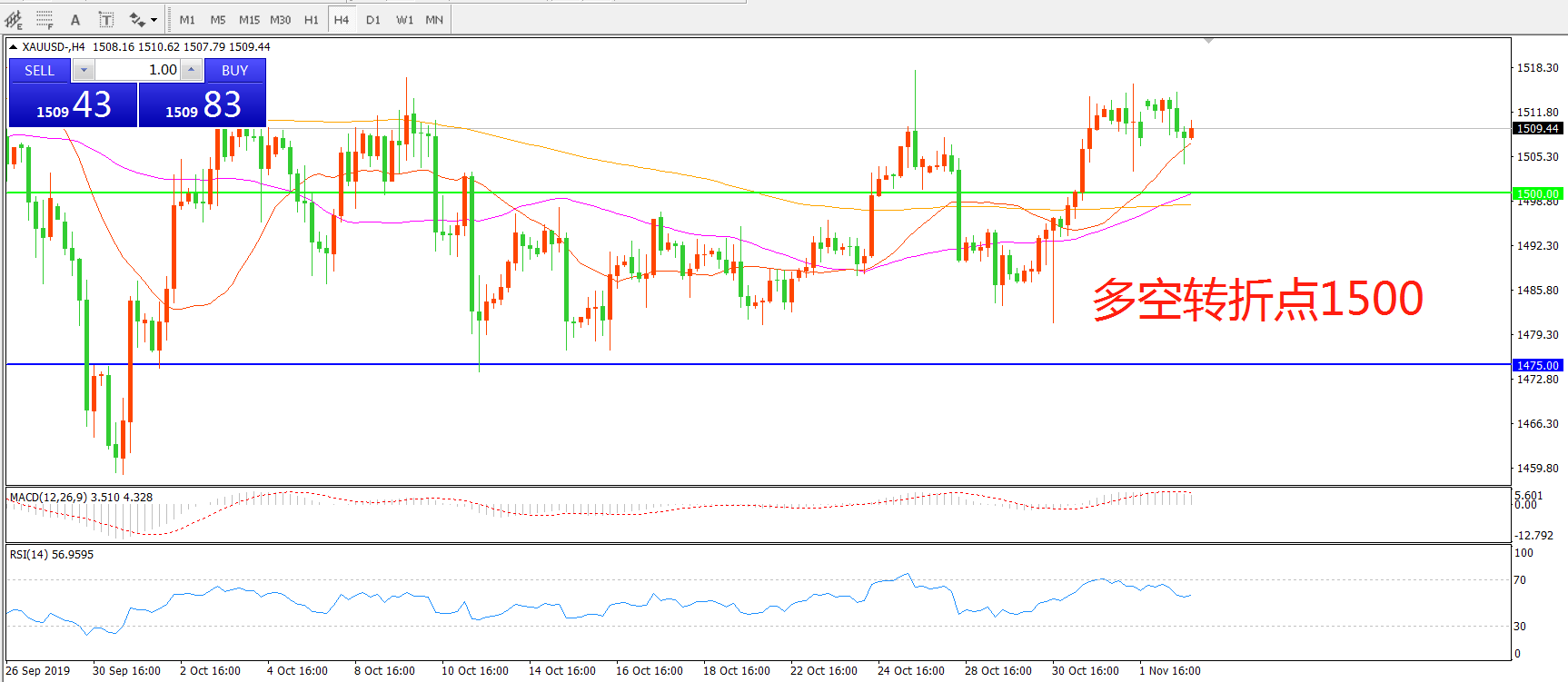 多空转折点:1500.00