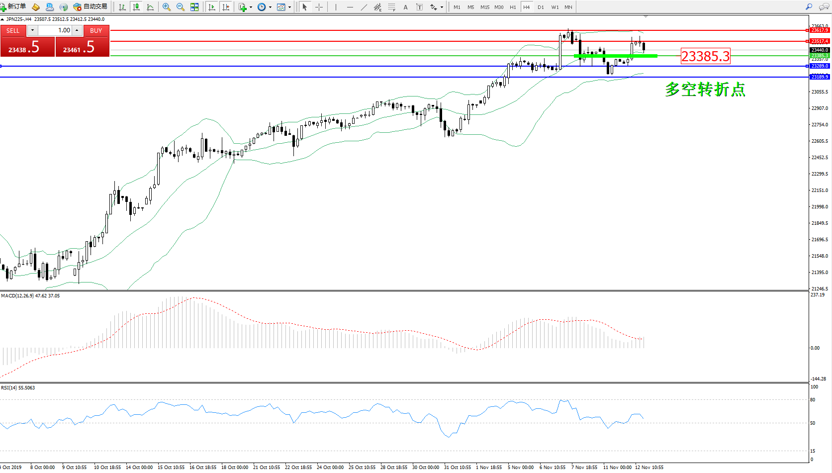 日经225指数1112日(周二)收盘上涨189.66点,涨幅0.81%,报23521.50点。日经指数收涨0.8%23520点,传言有人工智能买盘,不过日经指数仍在上周五所及年内高点23591.09下方;日本10年期国债收益率涨至426日以来最高。日本首相安倍晋三:想要通过追加额外的预算来确保经济复苏。