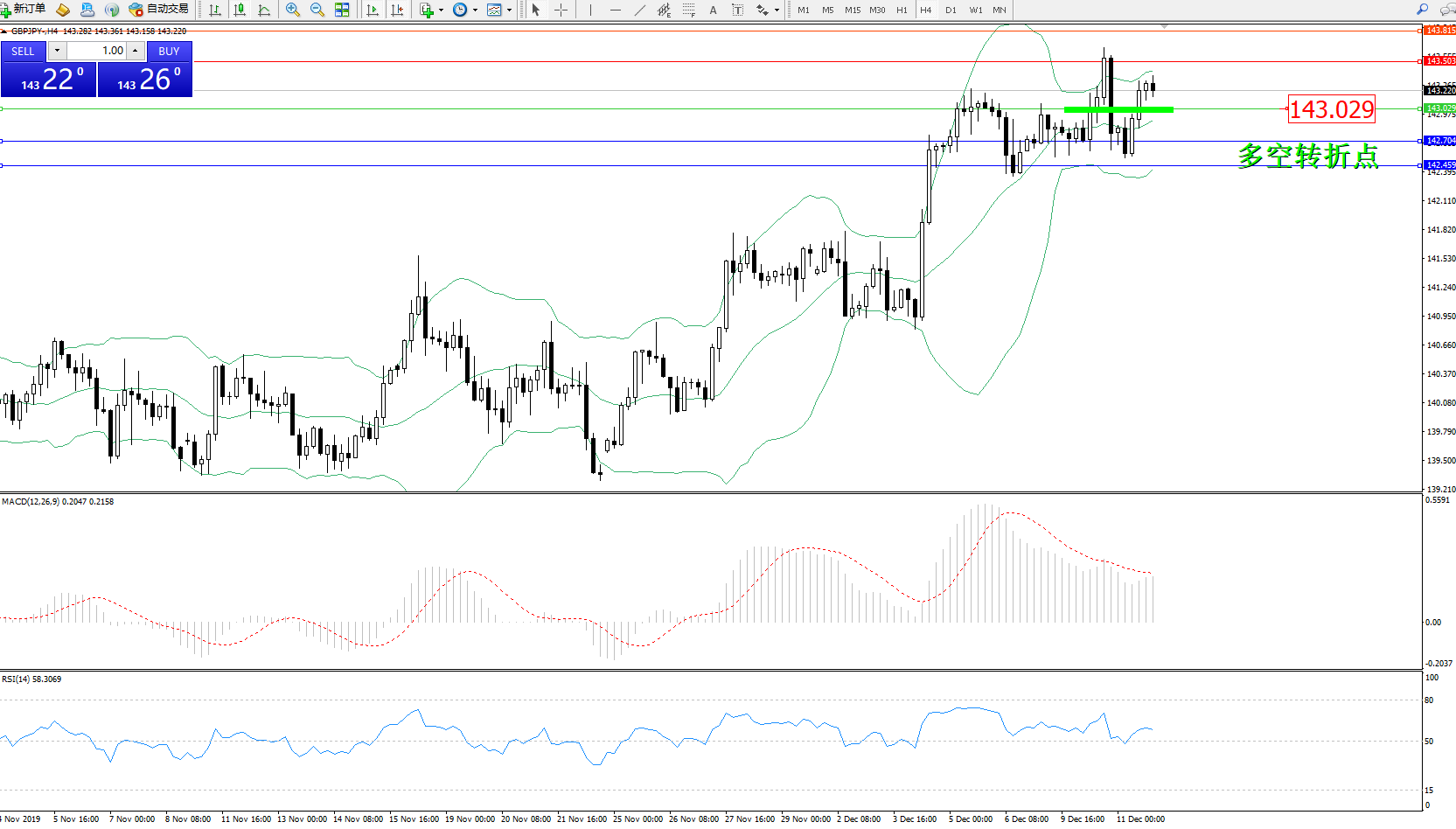 交易策略:143.029上方看涨,目标143.503、143.815