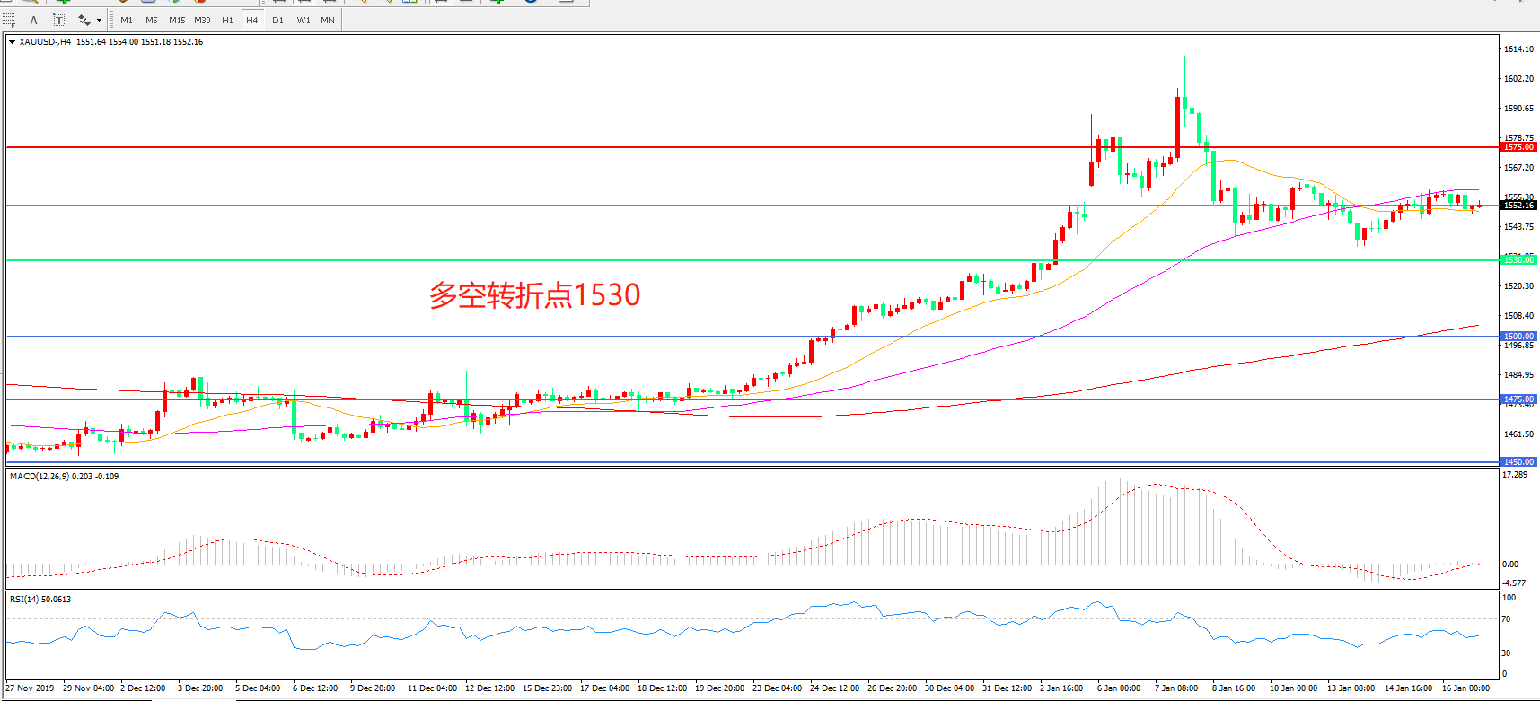 周四(1月16日),此前公布的多项经济数据显示美国经济前景乐观,美元指数走强令金价承压,收报1551.42美元/盎司。近期金价整体维持窄幅震荡形态,波幅不大,预计短期内市场盘整仍将继续。