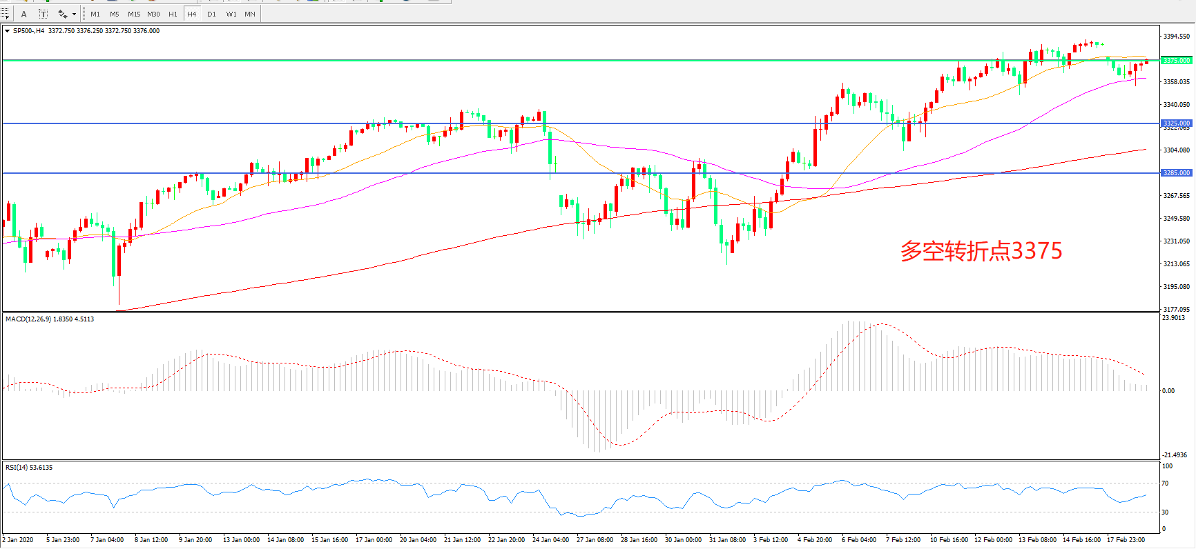 多空转折点:3375.00