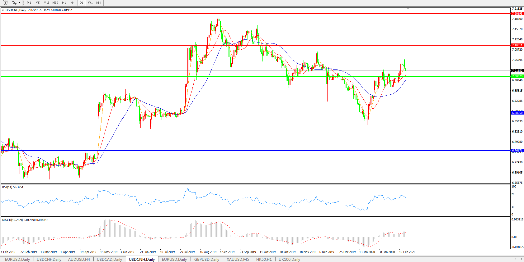 交易策略: 在7.0000之上,看涨,目标价位为7.1000,然后为7.2000。