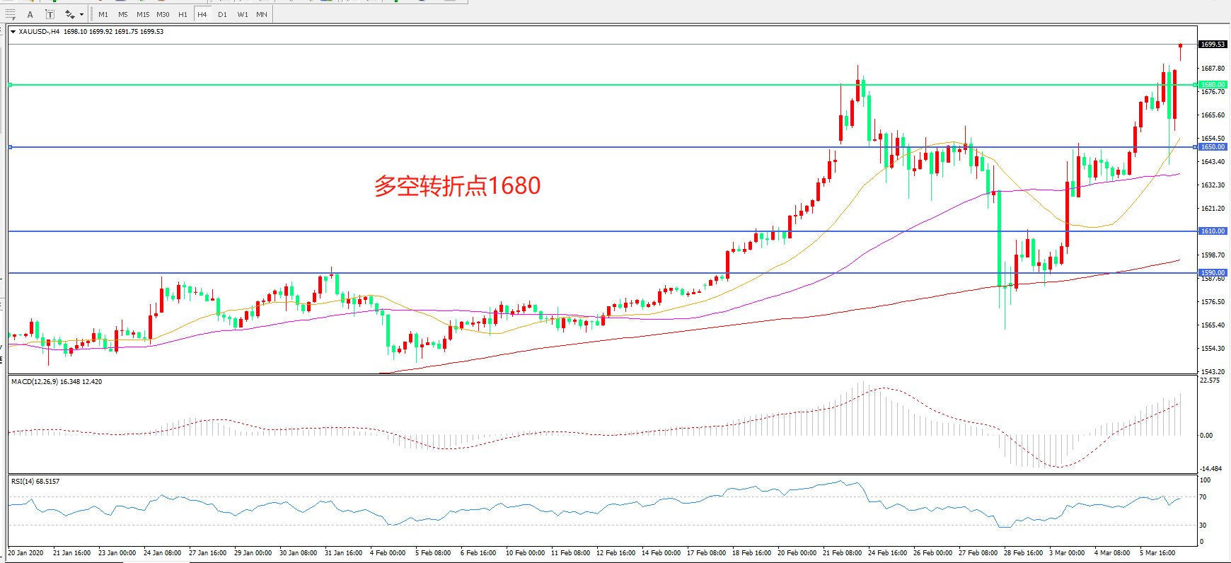 多空转折点:1680.00