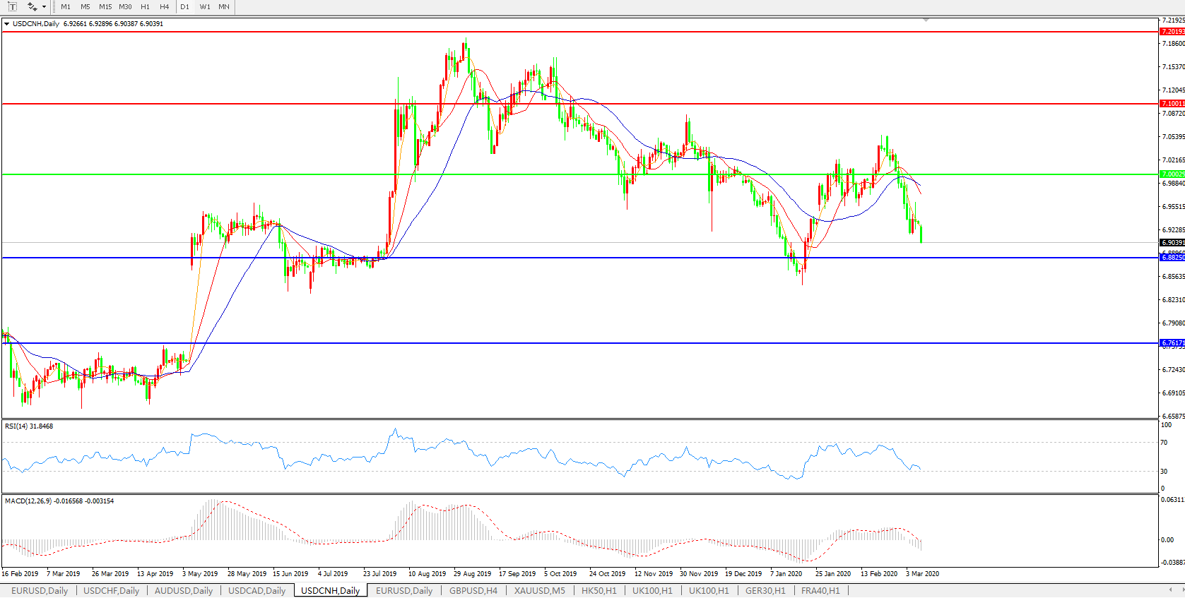 交易策略: 在7.0000之下,看跌,目标价位为6.8820,然后为6.7600。