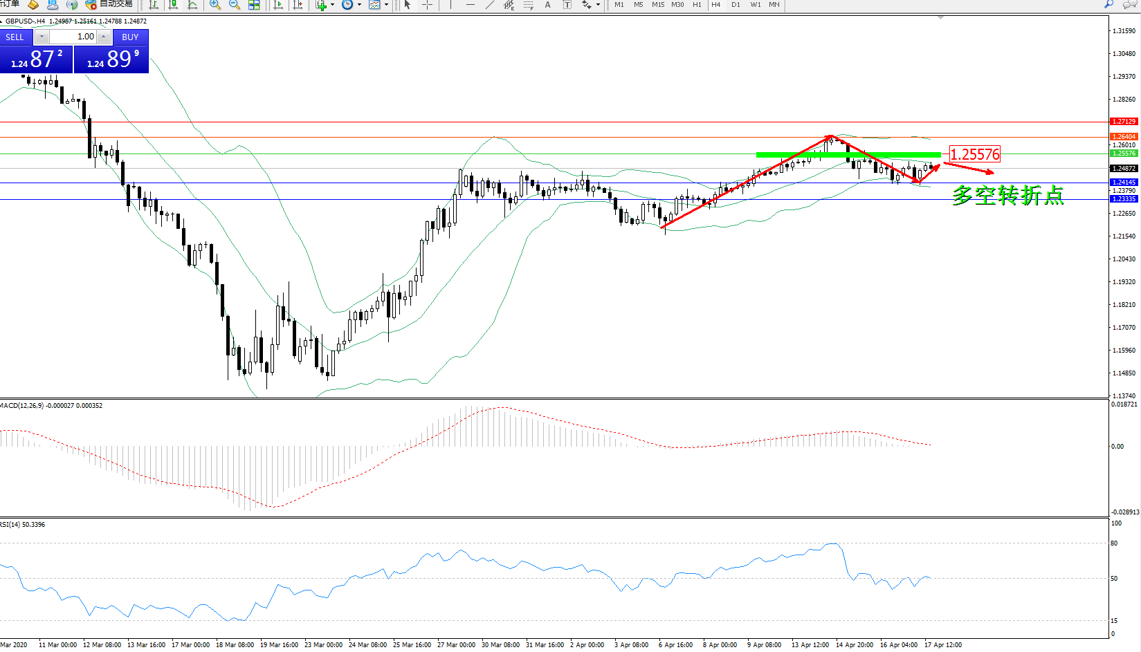 英镑美元GBPUSD ——4小时K线图显示: