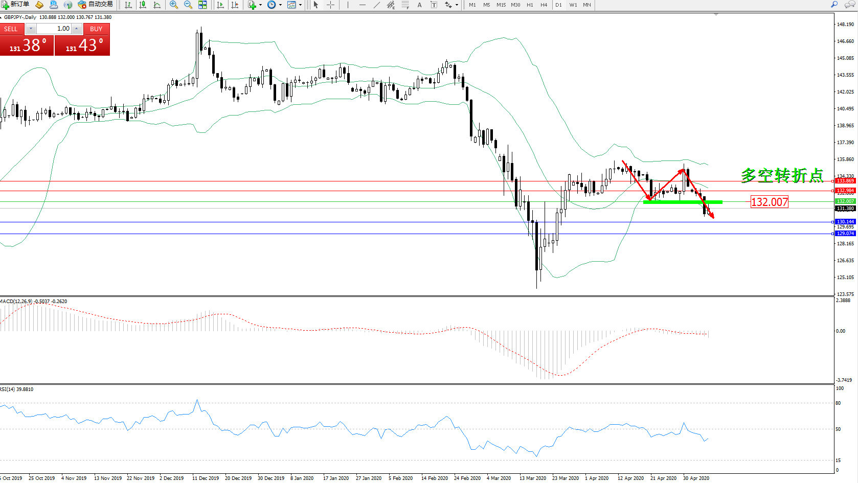 技术点评:空头动力延续布林带指标中下轨区间弱势震荡向下移动中,布林带指标弱势震荡平移后开始有向下移动态势,且即将有张口迹象,MACD指标处于0-轴线下方弱势整理平移,RSI指标处于50均衡线下方持续震荡有继续下行态势;
