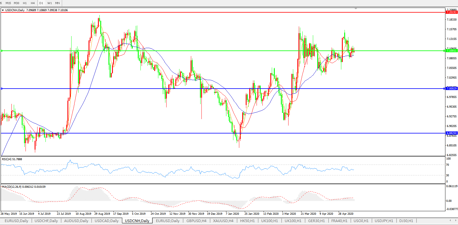 交易策略: 在7.1000之上,看涨,目标价位为7.2000,然后为7.3000。