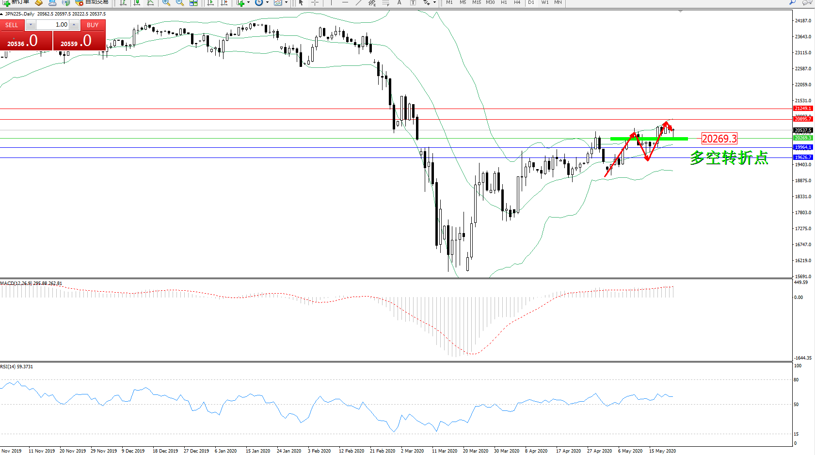 交易策略:20269上方看涨,目标20895、21249