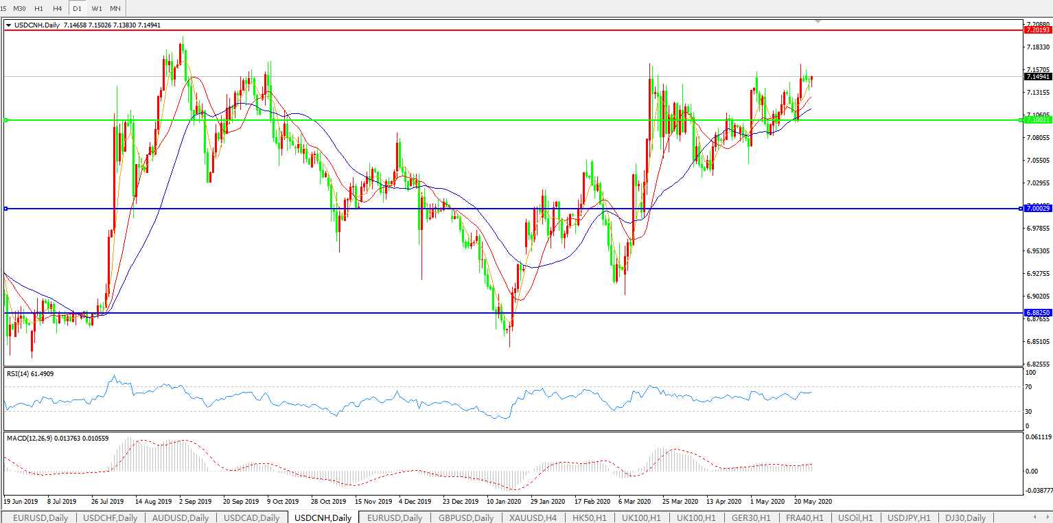 交易策略: 在7.1000之上,看涨,目标价位为7.2000,然后为7.3000。