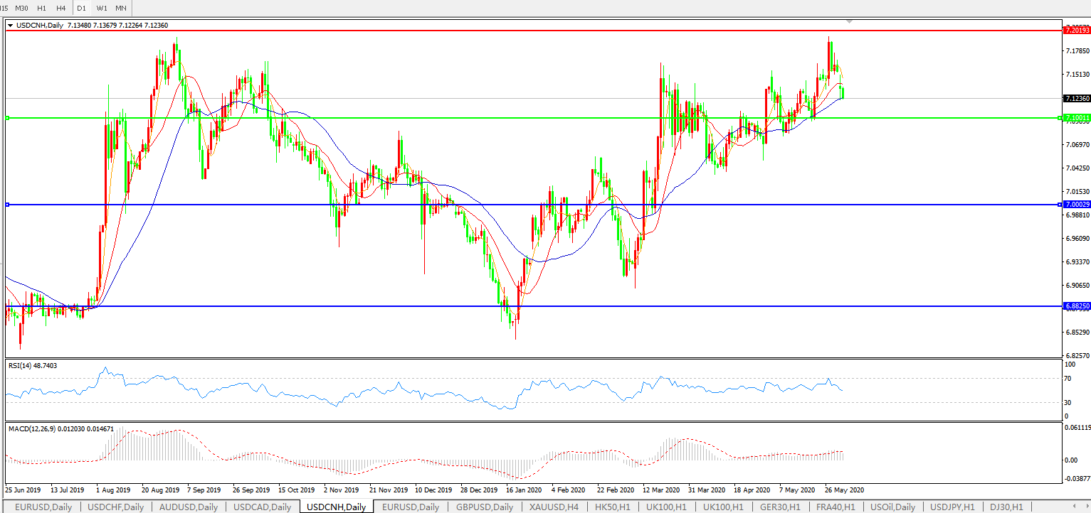 美元兑人民币USDCNH    日线图: