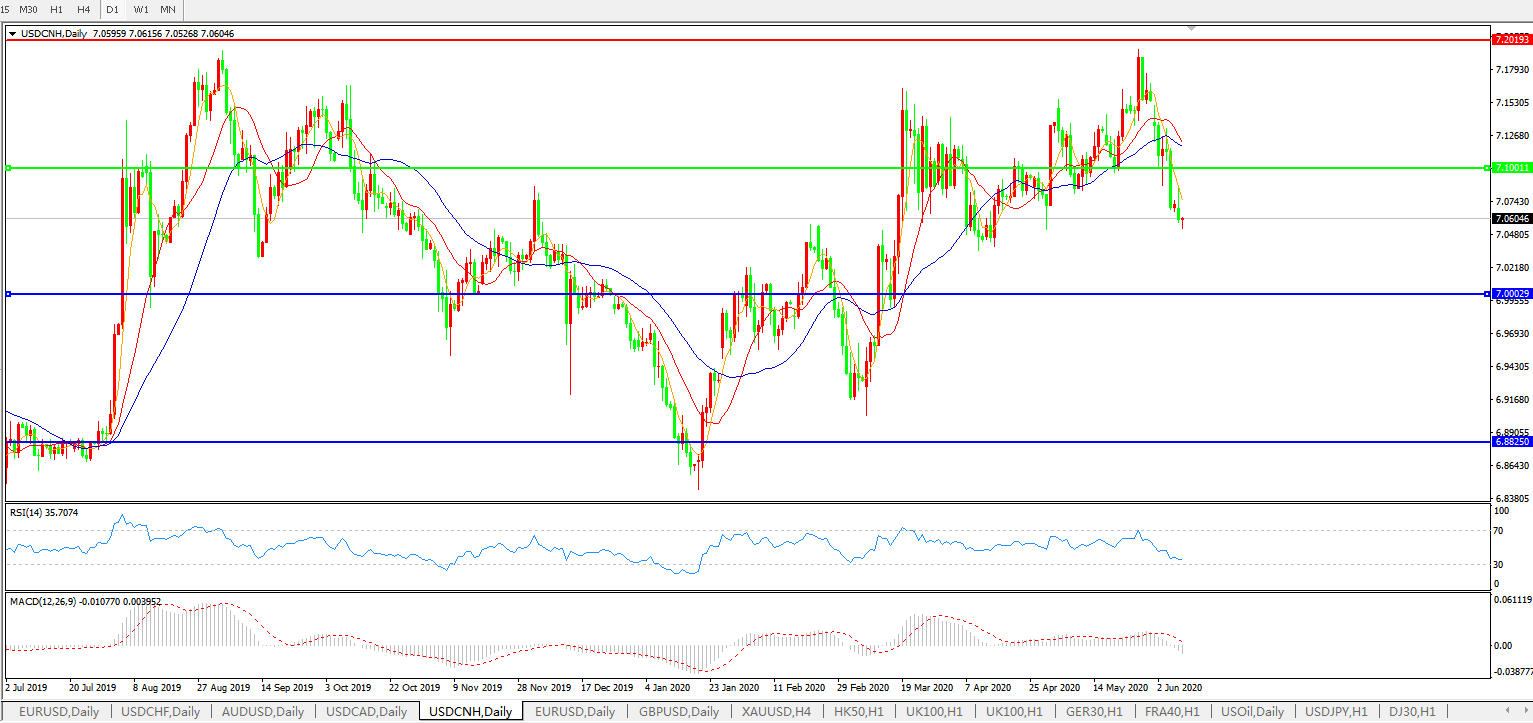 交易策略: 在7.1000之下,看跌,目标价位为7.0000,然后为6.8820。