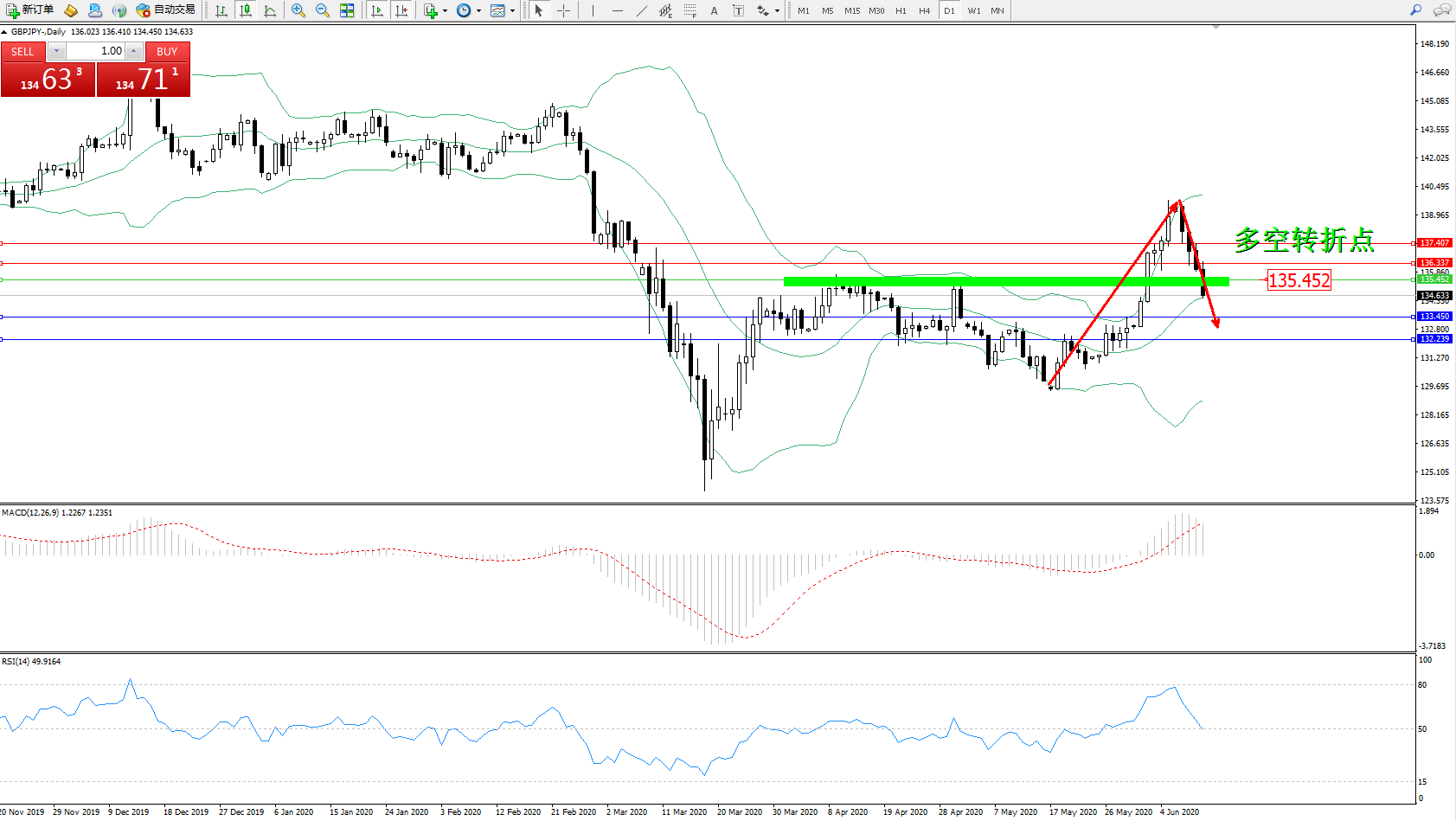 英镑兑日圆刚触及134.456附近,英国首相鲍里斯·约翰逊10日宣布解除疫情封锁的相关措施。这是英国自疫情封锁以来第三次宣布放松封锁,也是逐步“解封”幅度最大的一次。在当日举行的政府每日疫情发布会上,约翰逊宣布,从6月13日开始,单身成年家庭可以与其他任何规模家庭形成一个“互助群”,群内成员可以去彼此家里过夜,而不必保持社交距离。下周一(6月15日)起,非必需品商店在遵守社交距离规定前提下可以重新营业。下周一起,英格兰的动物园、户外景点、露天影院开始重新开放。本周末起,礼拜场所将开放供私人祈祷。7月4日开始将进入“解封”计划的第3步,这一步包括开放酒吧、餐厅等领域。