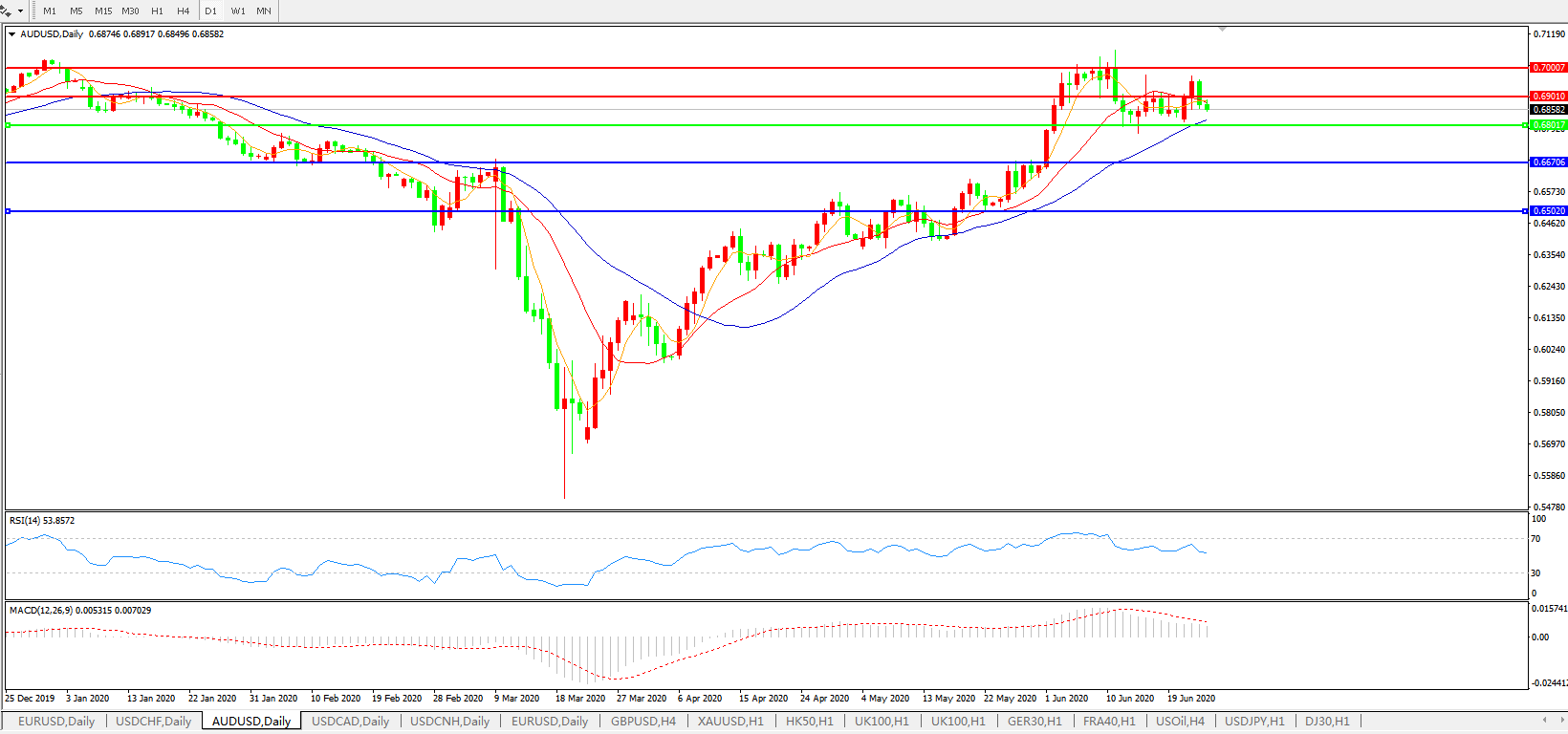 支撑位:0.6670 0.6500