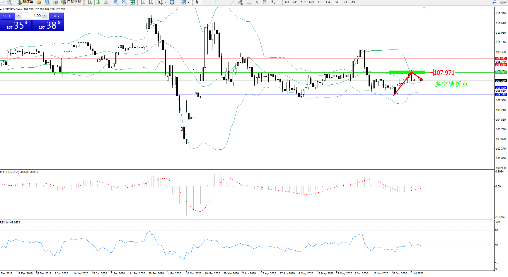 交易策略:107.971下方看跌,目标106.830106.335