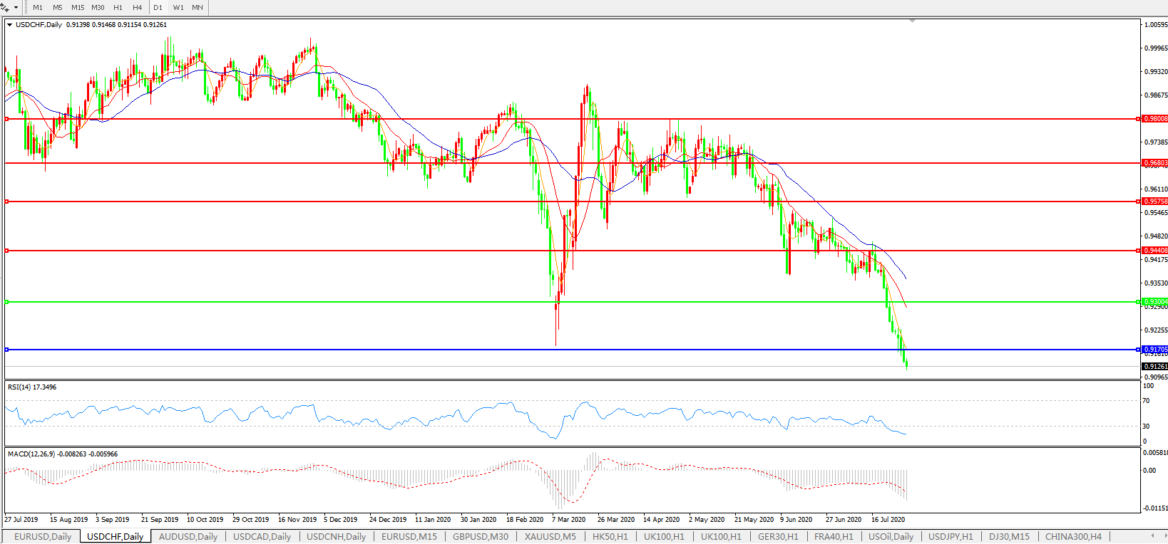 美元兑瑞郎USDCHF 日线图: