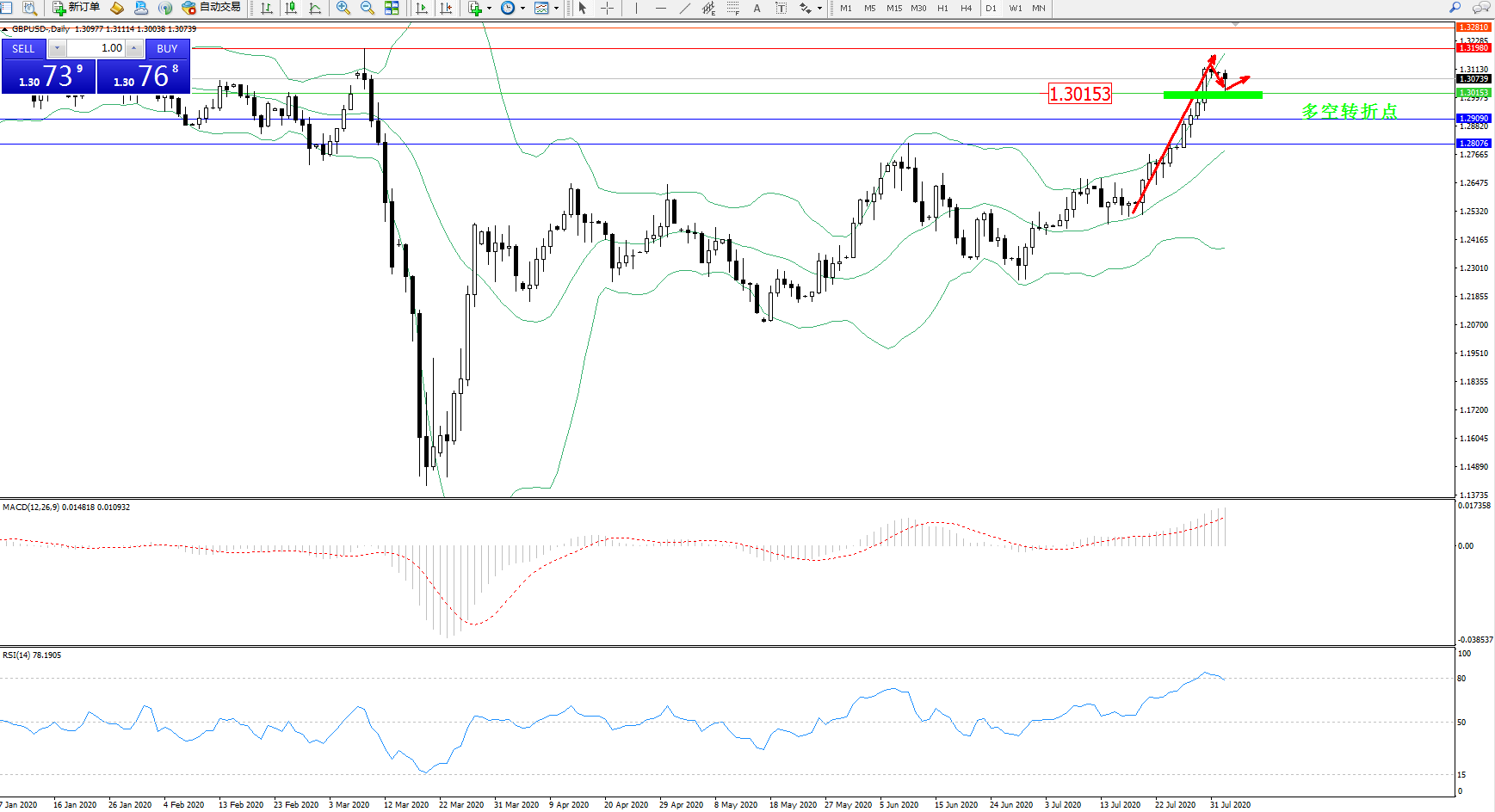 多空转折点:1.30153