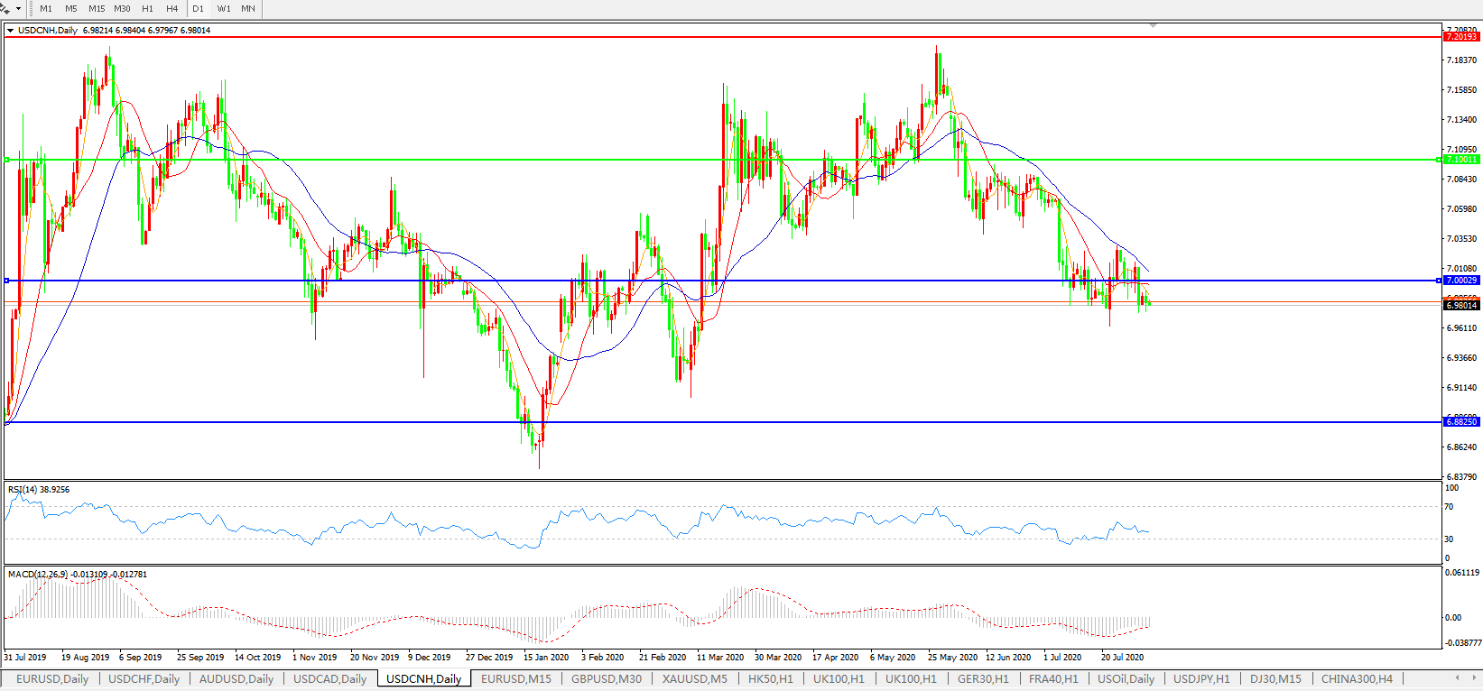 美元兑人民币USDCNH    日线图: