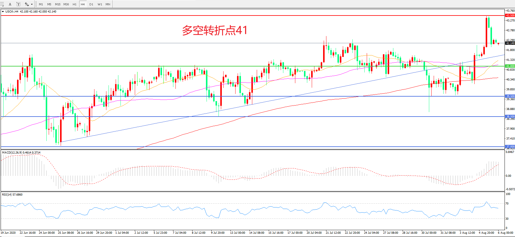 交易策略:在41.00之上看涨,目标43.50 46.00