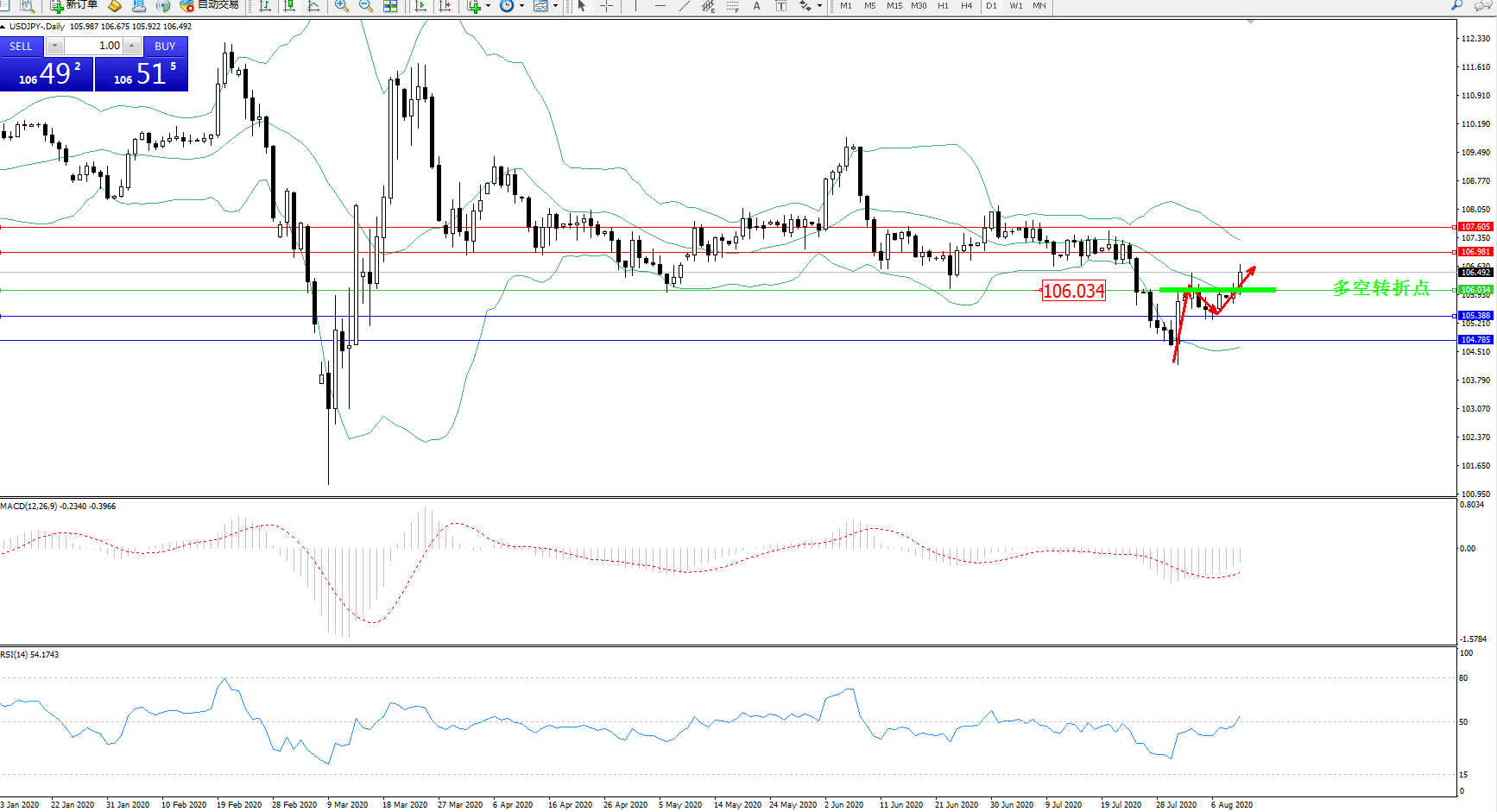 多空转折点:106.034