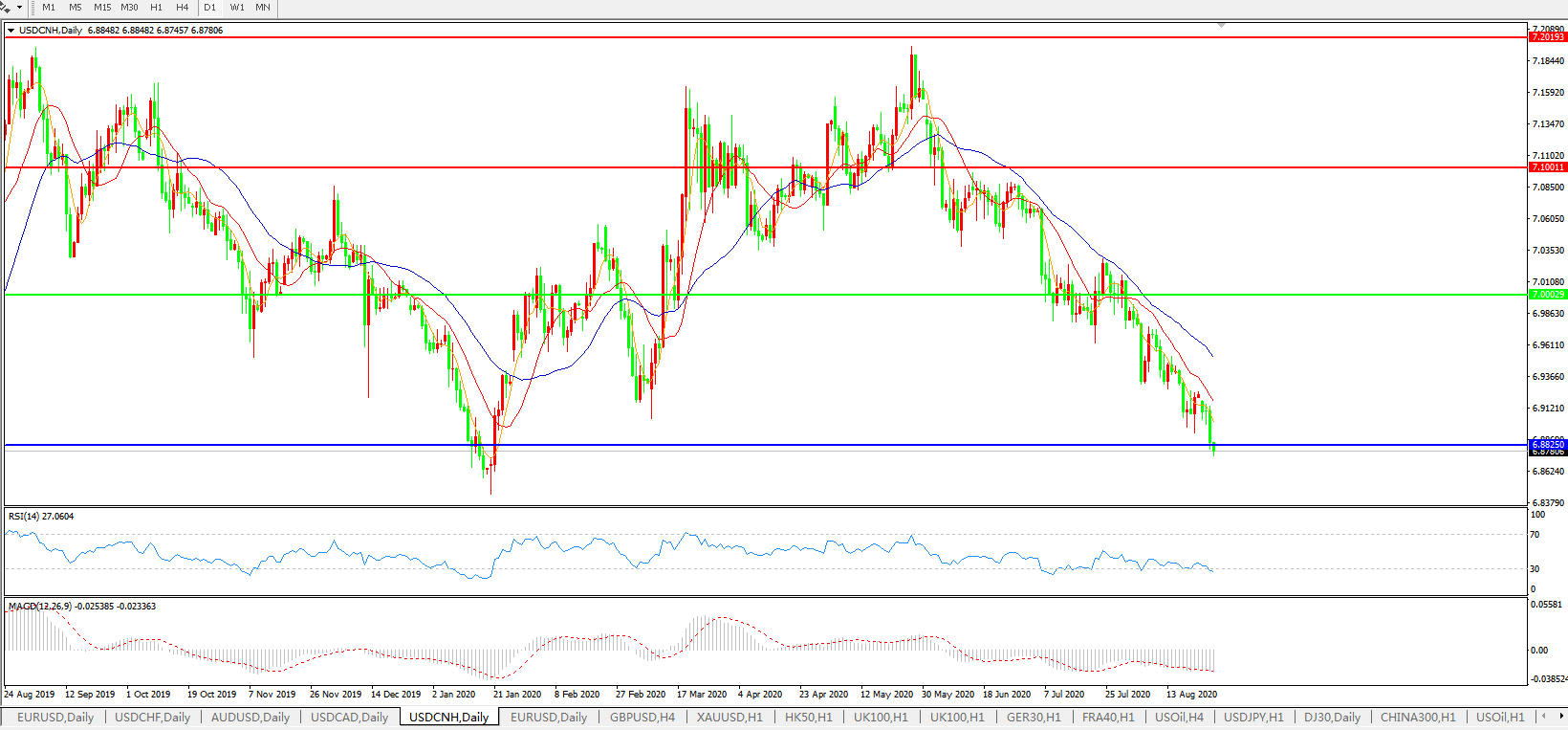 美元兑人民币USDCNH 日线图: