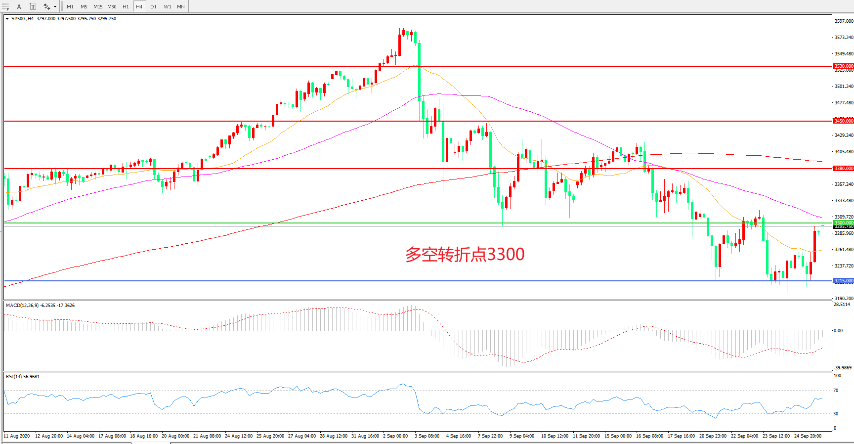 多空转折点:3300.00