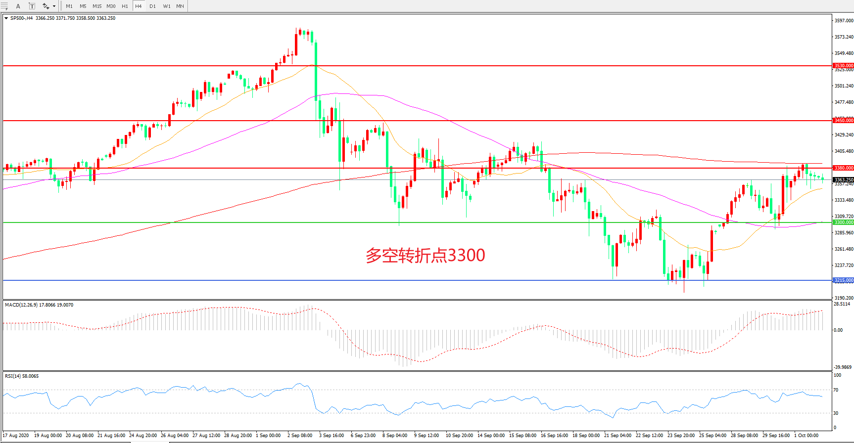 多空转折点:3300.00