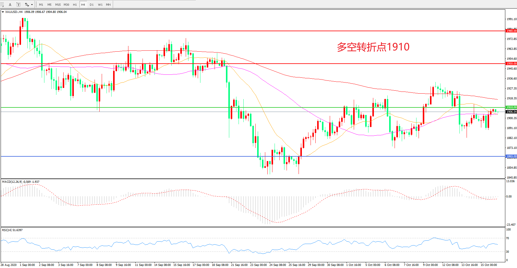 值得注意的是,拜登竞选阵营也有两人新冠检测呈阳性,邮件门的事件再度袭向拜登,焦灼的选情料将加剧市场波动,随着美国大选推进,财政刺激、大选选情及海外疫情疫苗情况等因素仍面临较高不确定性,金价仍将以宽幅振荡为主。