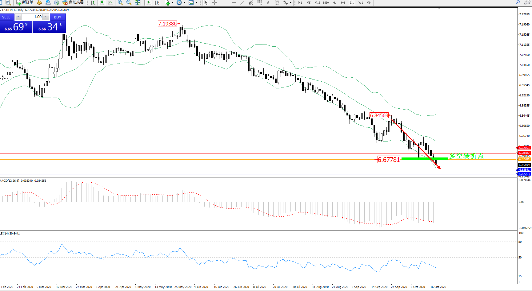 交易策略:6.67781下方看跌,目标6.63891、6.62263